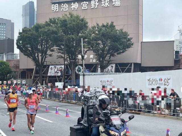 沿道声援の際には数十センチ先を世界最速のスピード歩いていく選手たち