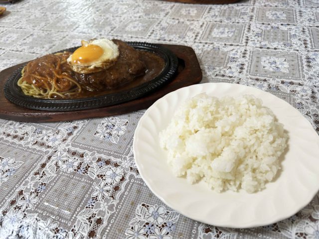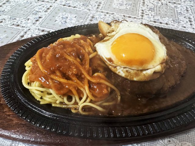 スパゲティもハンバーグも食べれる欲張りな一品で、ハンバーグはギュッと詰まったお肉で、噛めば噛むほどお肉の味がジュワッと口の中に広がります。