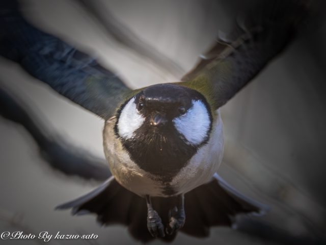 まずこれは「シジュウカラ」。枝からポンっと飛んだ時の。
