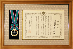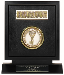 为北海道文化和产业作出的贡献予以表彰。洞察世事,以高技术力实现水产加工的自动化・机械化,为当地产业和食品工业作出贡献,因而受到表彰。
