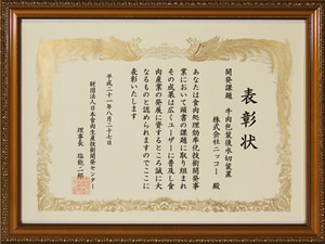 社团法人畜产技术协会特别认定的优秀技术开发课题,选定1~2点,予以表彰。被赞赏「民间构成的研究团队,至今没有受过表彰,此次为划时代性的表彰」。