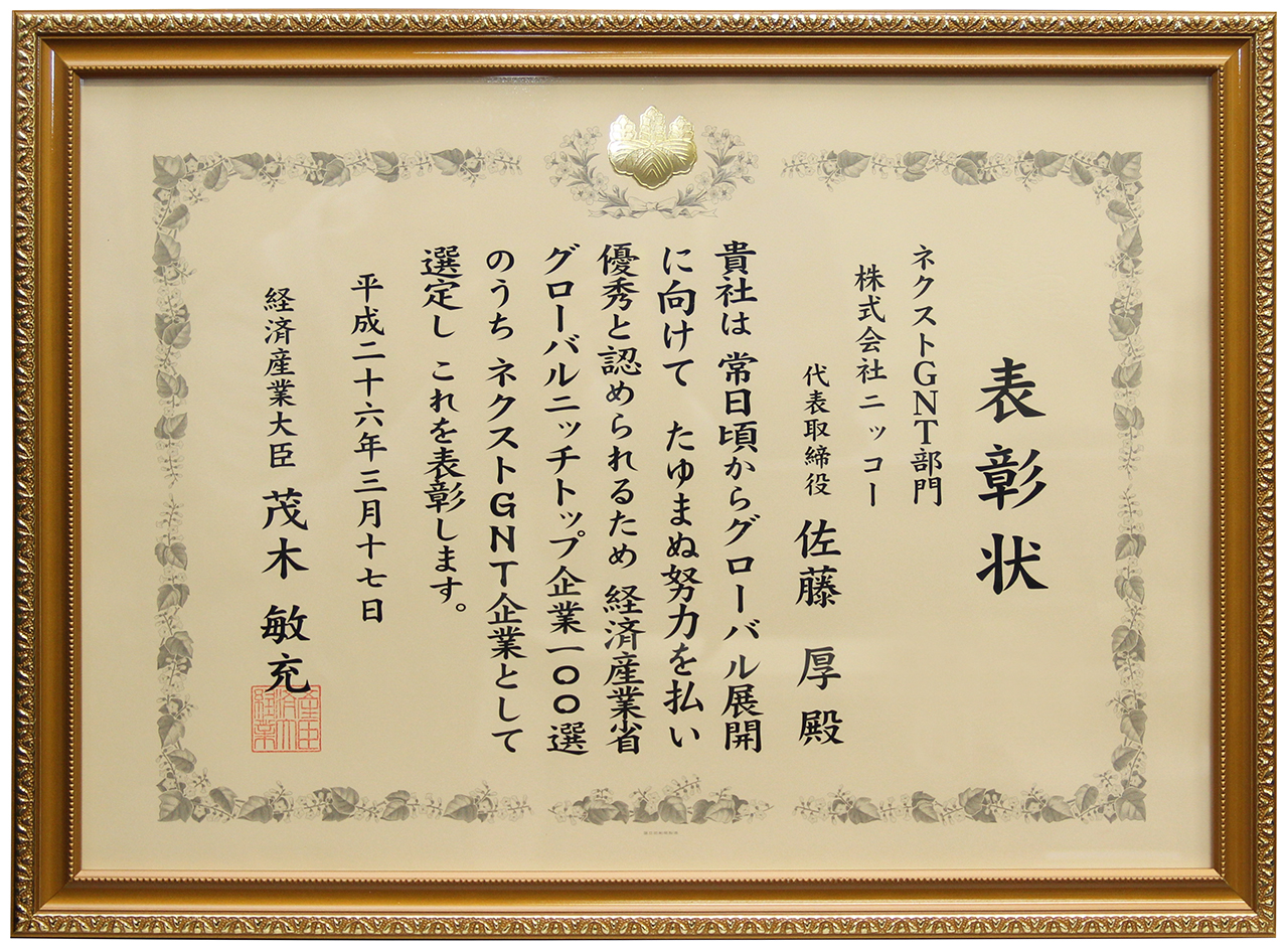 经济产业省从开拓国际市场的企业中,选出在利基领域创出高销量,并且经营良好的企业,将其列入「全球利基市场销量领先企业100强」。