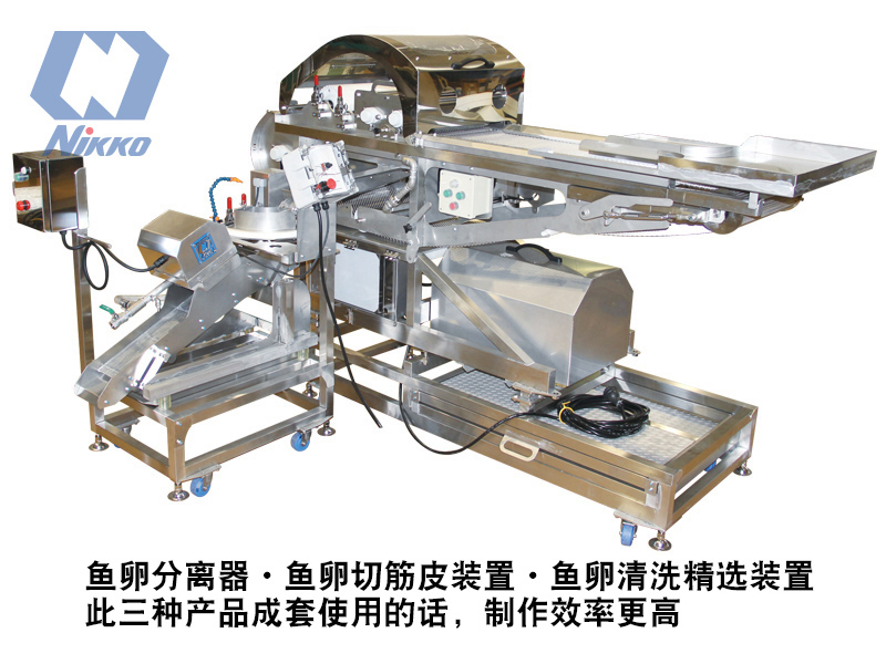 • 鱼卵分离器・鱼卵切筋皮装置・鱼卵清洗精选装置,此三种产品成套使用的话,制作效率更高。